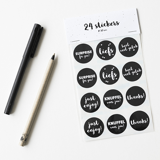∙ stickervel ∙ 24 stickers ∙ 12 verschillende stickers x 2 stuks ∙ doorsnee 30 mm ∙ Moodz Design Deze stickers maken van elk cadeautje een feestje. Combineer deze sticker met het cadeaupapier, cadeauzakjes, lint en…